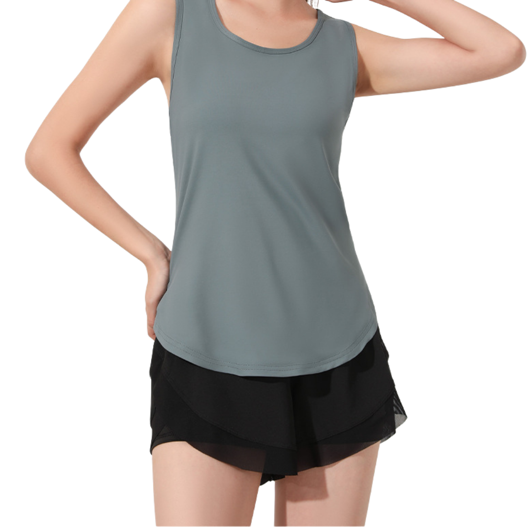 A sculpted fit hugs the body for support without squeezing, while the minimalist racerback profile ensures complete freedom through every rep, run, or stretch. Flatlock seams reduce chafing, and the matte black tone levels up your activewear aesthetic — clean, strong, and confidently understated.